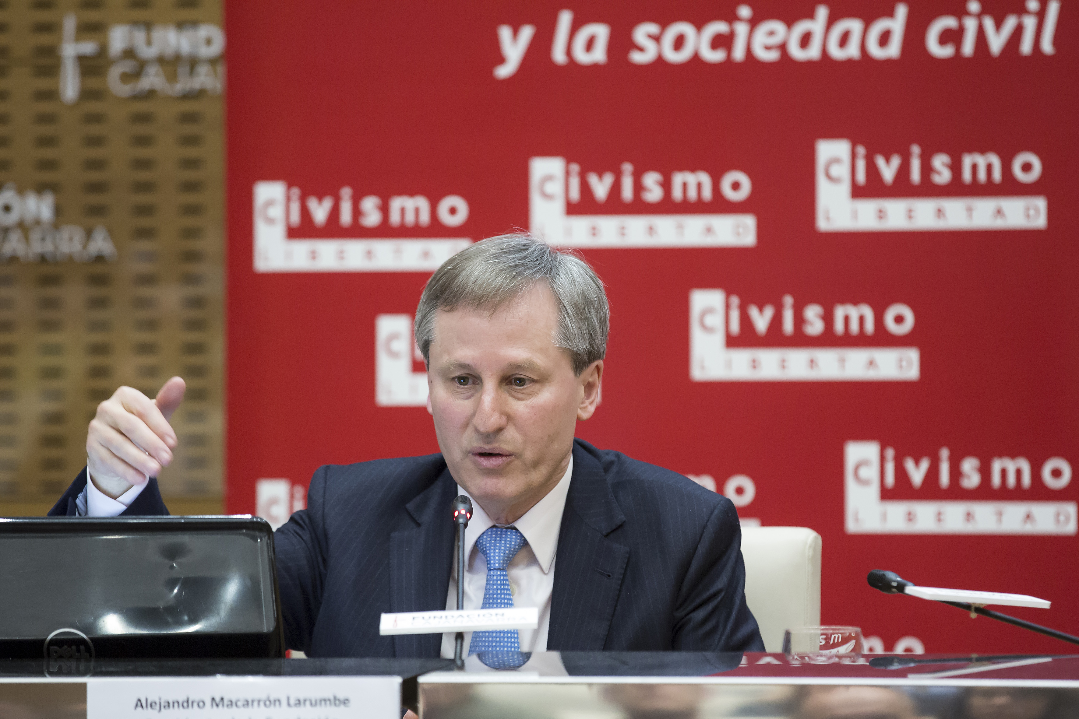 Macarrón señaló también los principales problemas que emergen de la instauración de una gerontocracia, como es el creciente esfuerzo por parte de las arcas públicas, de cara a financiar las pensiones, la sanidad y la dependencia, con las consecuencias indirectas sobre la fuerza laboral joven, la brecha intergeneracional, y alarmó sobre la insostenibilidad del Estado de Bienestar actual.<