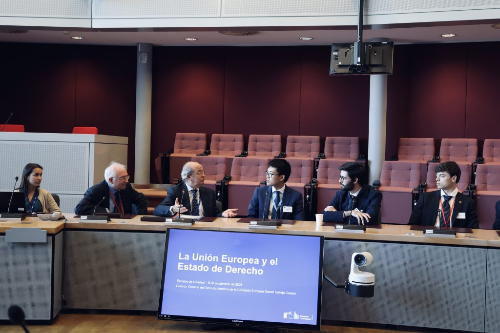 Además, los alumnos de la Escuela de Libertad han podido disfrutar de un pase privado al hemiciclo, donde se reúnen los 720 eurodiputados en sesiones plenarias para llevar a cabo los debates sobre la Unión Europea. También han tenido la oportunidad de visitar la Comisión Europea como invitados de honor, recibidos por Daniel Calleja, director general de Asuntos Jurídicos de la Comisión Europea con rango de comisario. Y han estado acompañados en todo momento por Florentino Portero, experto en Relaciones Internacionales e investigador senior de la Fundación Civismo, el cual nos ha congraciado con una ponencia amena sobre el panorama estratégico-comercial del Globo en la actualidad.