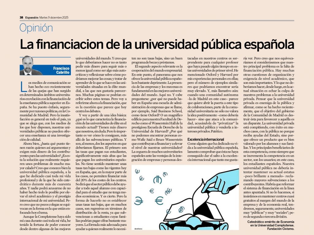 Los medios de comunicación se han hecho eco recientemente de las quejas que han surgido en determinados ámbitos universitarios en relación con la financiación de la enseñanza pública superior en España. Se ha puesto énfasis, seguramente por razones políticas, en la Comunidad de Madrid. Pero la insatisfacción es general en todo el país, ya que se alega que, con los medios de los que hoy disponen, nuestras universidades públicas no pueden ofrecer una enseñanza ni una investigación de calidad…